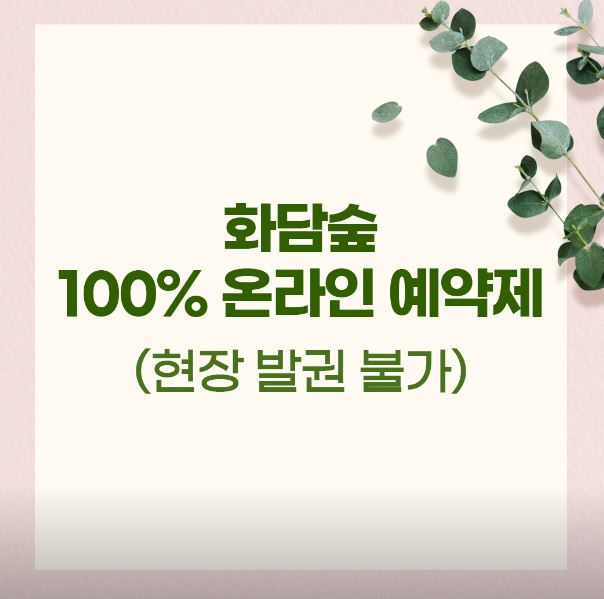 먼저 입장권의 경우 필수로 예매하셔야 하고, 화담채와 모노레일은 필수는 아닌 선택적으로 예매가 가능합니다. 온라인 예매의 경우 이용 당일 QR 코드가 발급되고, 발급 된 QR코드로 입장이 가능합니다.