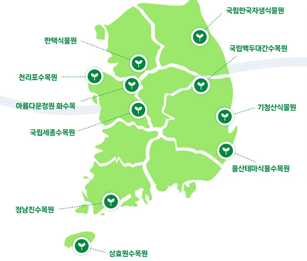 한국수목원 정원관리원에서는 전국에 있는 친환경 수목원 & 정원 10곳을 추천하고 있는데요, 한국수목원 정원관리원 직영 수목원 3개소, 사립수목원 6개소, 민간정원 1개소입니다.