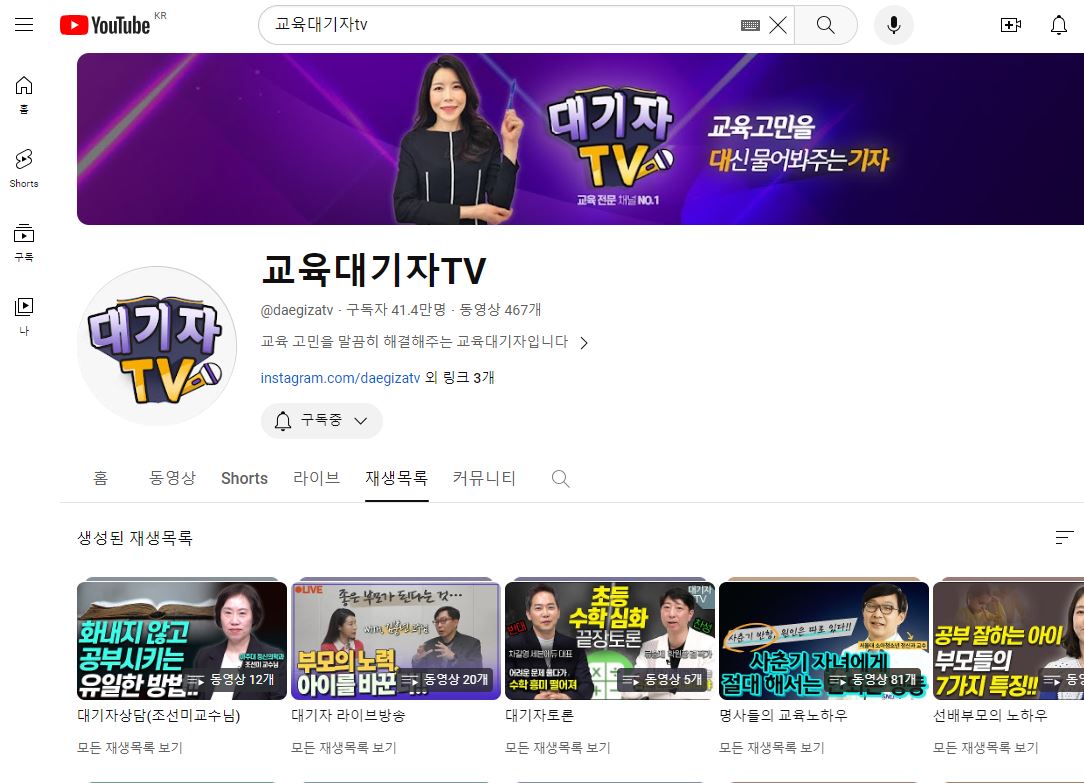 “교육 고민을 대신 물어봐 주는 교육대기자 TV”라는 멘트로 항상 영상을 시작하는 이 채널은 이제 왠만한 부모님 들이라면 다 알만한 41만이 넘는 구독자를 보유한 교육 전문 채널입니다.