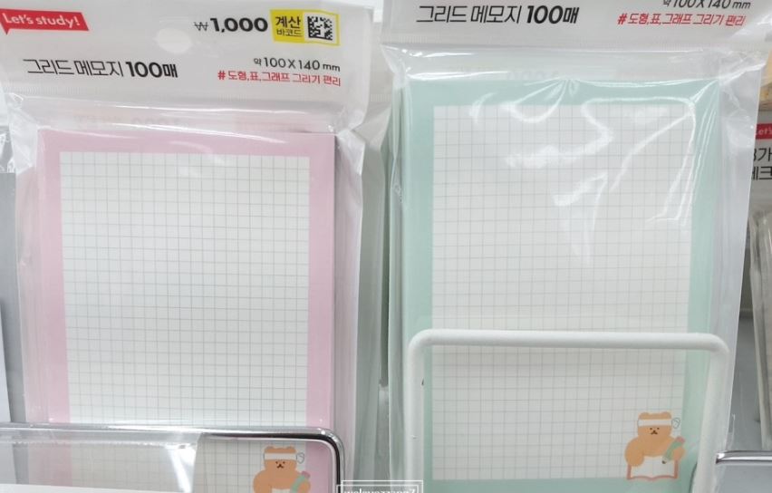 수학에서 빼놓을 수 없는 것이 바로 분수 문제, 도형, 점대칭, 그래프 등인데요, 이 그리드 메모지는 일정한 간격으로 칸이 표시되어 있어서 손쉽고 정확하게 수학 공부를 할 수 있습니다. 다이소에서는 일반 메모지 형태는 물론, 반투명 형태의 그리드 메모지도 판매하고 있어서 다양하게 선택이 가능하니 아이와 함께 꼭 한번 사용해서 수학 공부해 보시길 추천합니다.