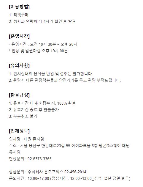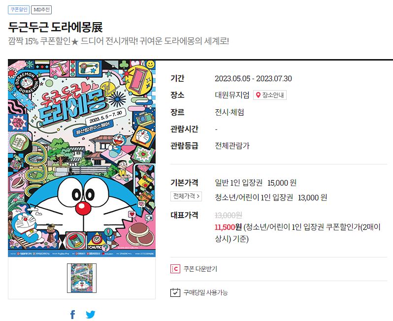 전시회 가격 치고는 저렴한 편이 아니어서 할인 예매를 알아보시는 분들이 많습니다. 제가 이용한 할인 팁을 알려드립니다. 현재 네이버에서 티켓 예매를 하고 있는데 별도의 할인이 적용되지 않습니다. 할인 예매가 가능한 사이트는 현재 티몬, 위메프입니다. 티몬은 5월 31일까지 컬처 쿠폰 3% 쿠폰을 발행하고 있으니 한 장씩 별도 예약해서 각 3% 할인이 가능합니다.