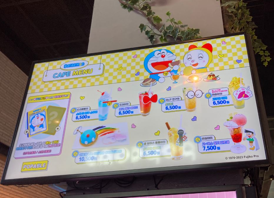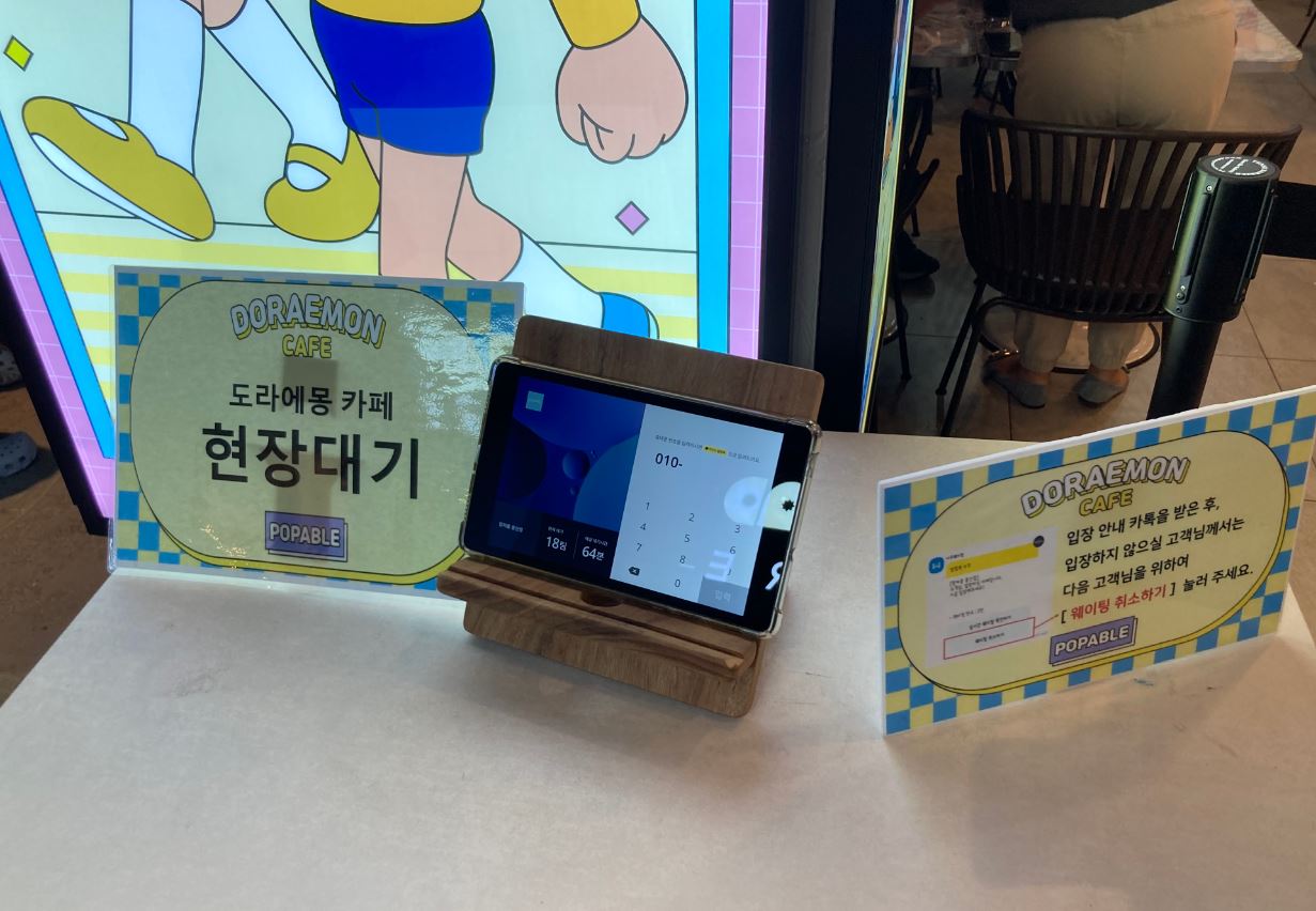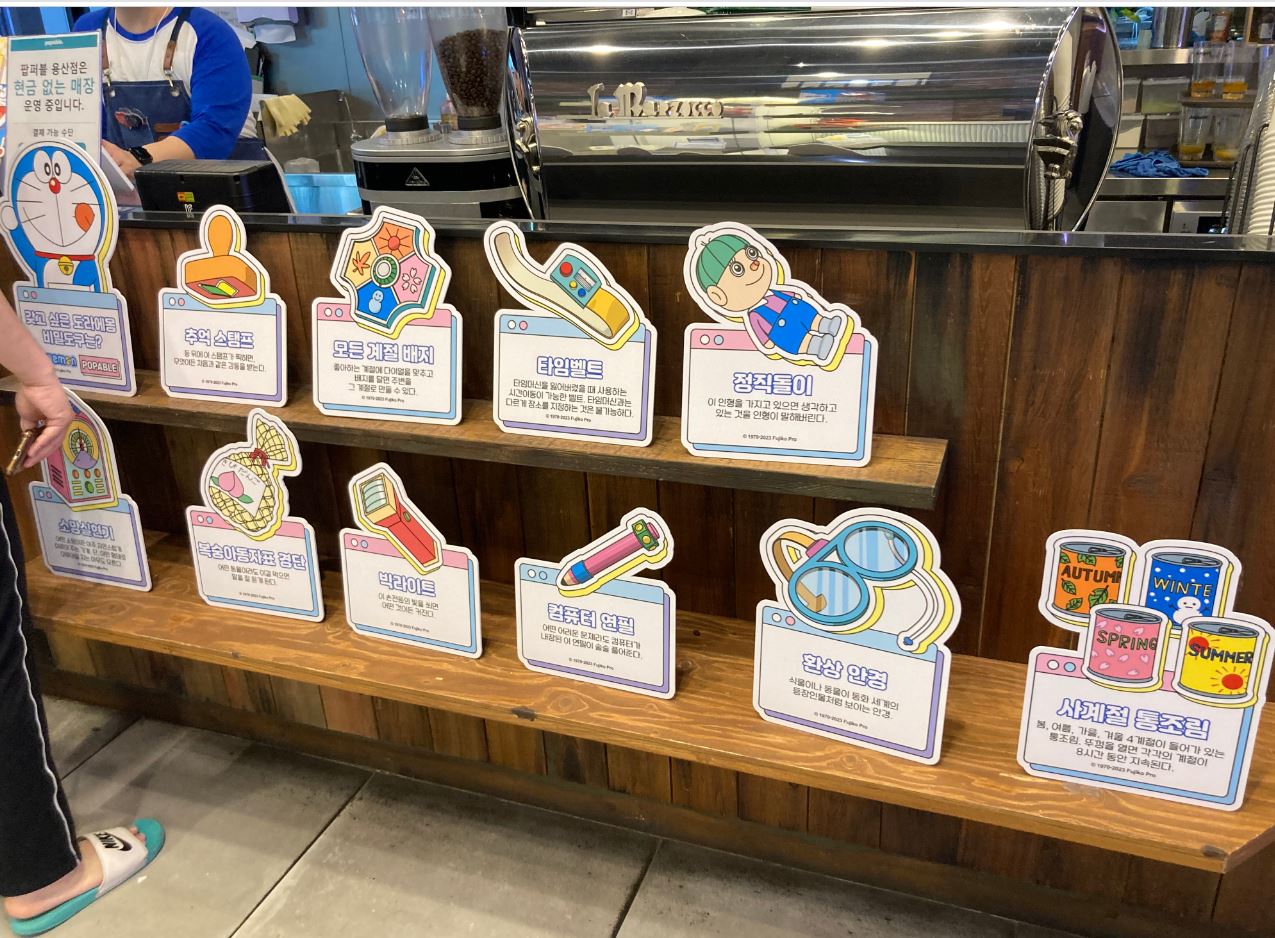 마지막으로 도라에몽 카페에 대한 정보입니다. 카페 이용은 남는 좌석에 상관없이 사전 키오스크로 현장 대기 신청 후 입장이 가능했습니다. 저는 카페에 좌석이 많이 남아 있어서 대기 신청을 별도로 하지 않았는데 모든 입장은 대기 후 가능하다고 해서 전시회 관람 후 30분 이상 대기했습니다. 그래서 카페를 이용하실 계획이 있으시다면 입장전에 대기 신청을 해 놓고 관람을 하시면 관람 후 바로 입장이 가능하실 것 같습니다.