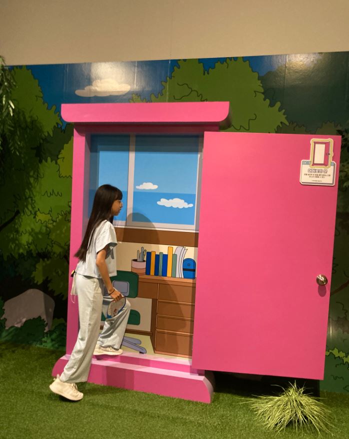 가장 인기가 많았던 전시 테마는 진구의 방이였는데 세트 뒤편으로 가서 진구의 책상 서랍 속에서 나와볼 수 있게 제작되어 있어서 직접 체험해 보고, 사진을 촬영해 볼 수도 있었습니다. 이어지는 비밀도구 체험 공간에서도 가방 안에 직접 들어가 볼 수 있어서 아이도 저도 많이 즐거웠습니다.