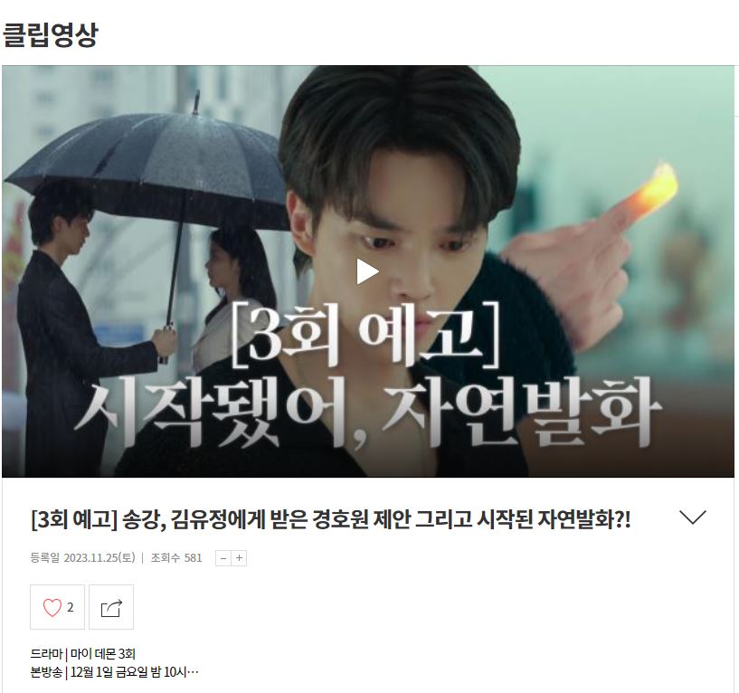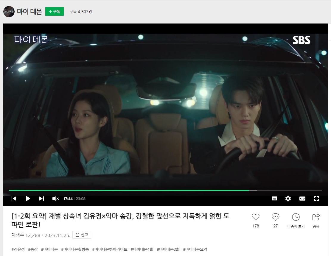 요즘 종편 채널과 OTT 플랫폼으로 재미있는 드라마와 영화들이 많이 나오면서 지상파 방송 드라마에 관심이 적어진 것이 사실입니다. 저 역시도 그런데요, 하지만 최근 웹툰으로 연재 중인‘마이 데몬’이 SBS 드라마로 나온다고 해서 관심을 가지고 봤습니다.