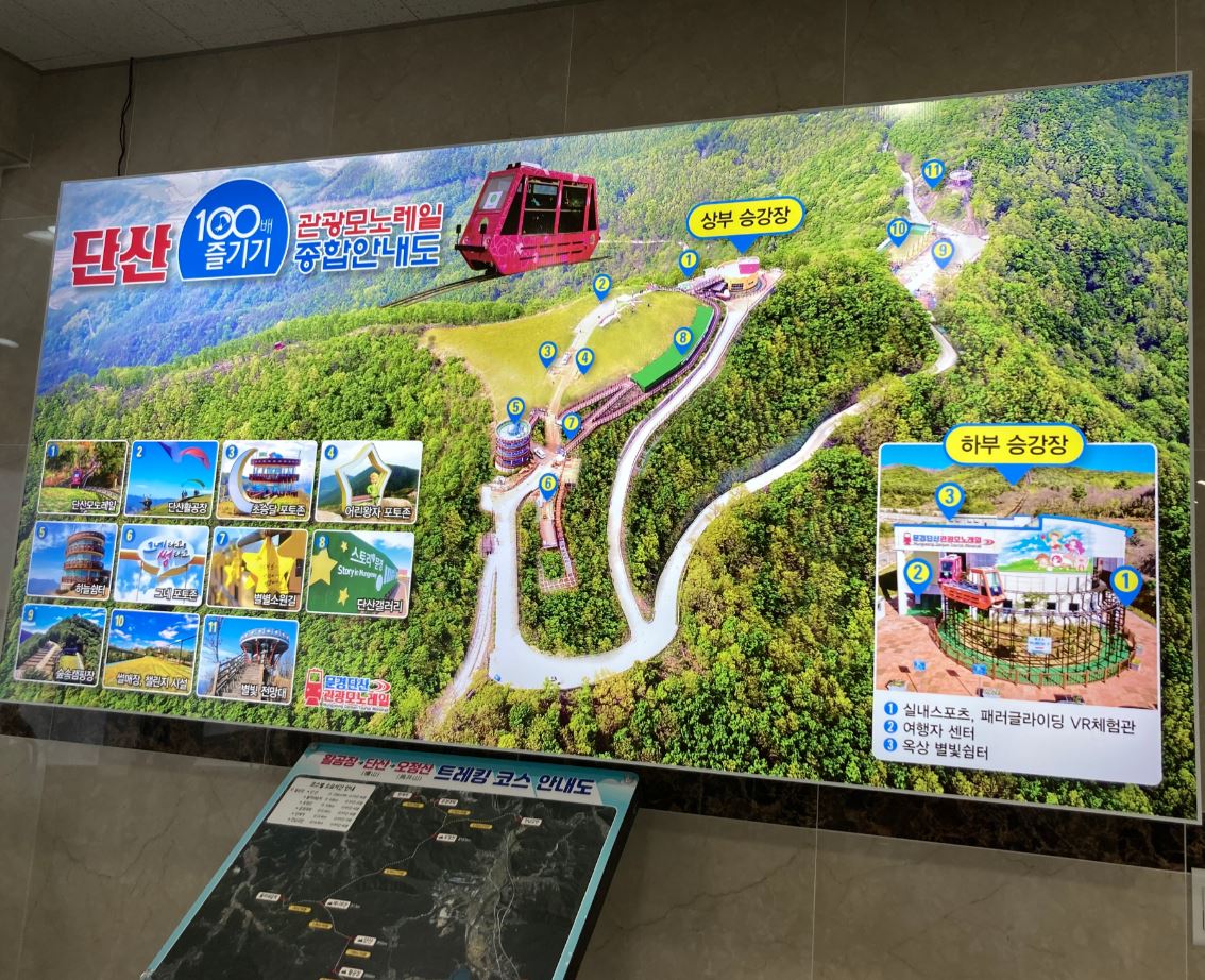 단산의 정상까지 모노레일을 타고 올라가는 만큼 소요시간은 상행 시 35분, 하행 시 25분으로 왕복 1시간이 걸리고, 정상에서 관람하는 시간까지 포함한다면 방문 시 최소한 1시간 30분에서 2시간은 예상하시고 방문하시기를 권유 드립니다.