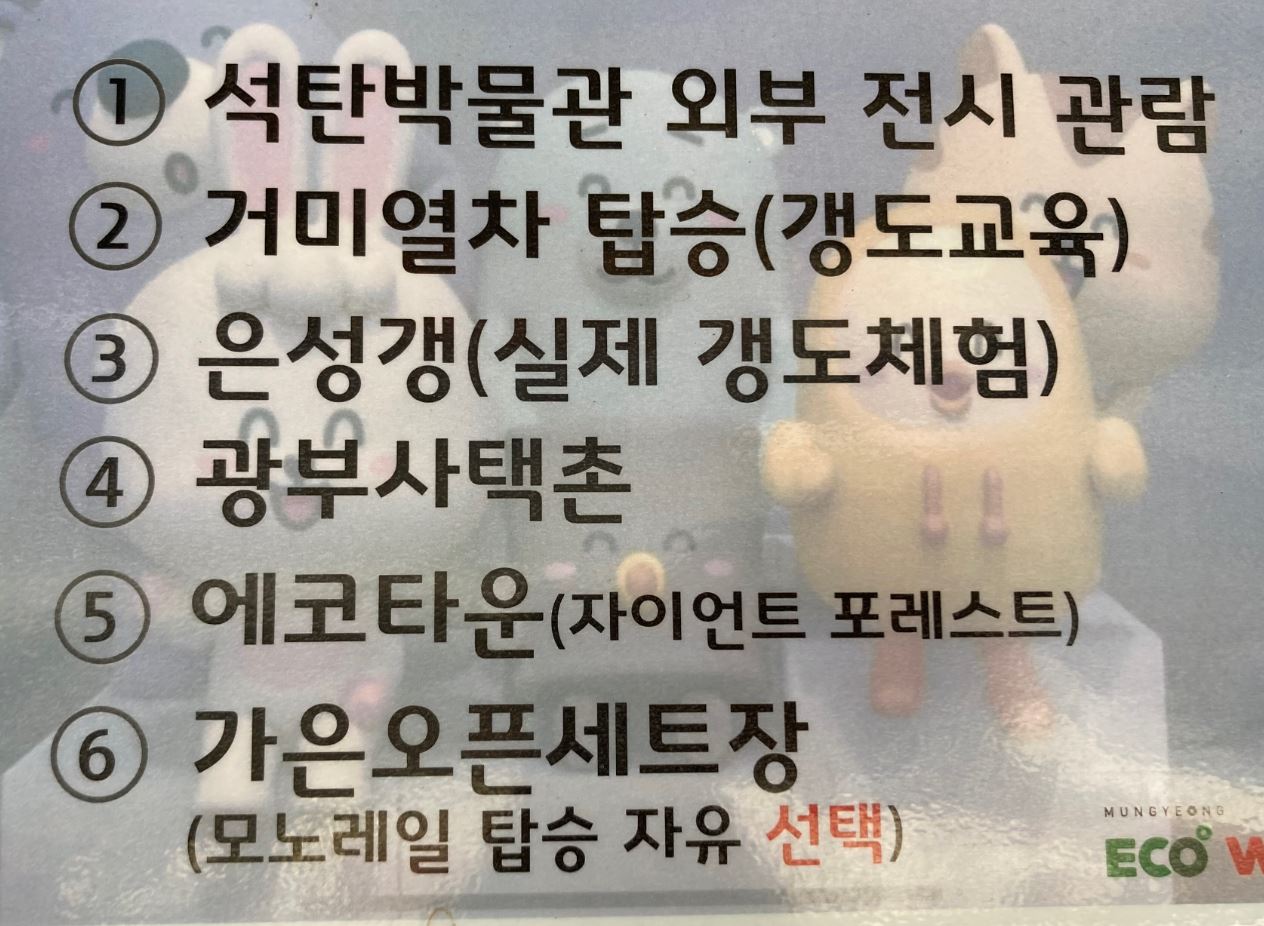 그 외 야외에 위치한 자이언트 포레스트라는 넒은 놀이시설(놀이터), 석탄 박물관 뒤편에 위치한 은성 갱도, 그리고 동굴 내를 이동하는 거미 열차, 탄광 사택촌 등은 별도의 추가 요금 없이 시설이 이용 가능하고, 시간이 없으신 분들은 키즈월드를 가지 않아도 아이, 어른 모두 즐거운 시간을 보내기에 충분합니다.