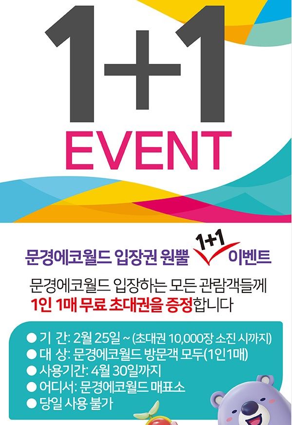 문경 에코월드는 네이버 페이지에서 예약이 가능한데 5% 할인된 요금인 성인 9,500원 소인 8,500원에 예약할 수 있고, 이용 1시간 전에는 예약하셔야 이용이 가능합니다. 입장권과 키즈 월드를 함께 이용할 수 있는 패키지권은 성인은 14% 할인된 12,900원에, 소인은 12% 할인된 14,900원에 예약할 수 있으니 키즈 월드를 이용하신다면 예약하는 것이 좋은 방법입니다.