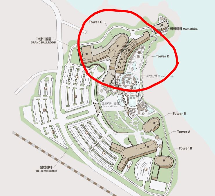 C동 : 로비층(5층)을 기준으로 위쪽으로 객실구성 D동 : C동 앞쪽으로 위치하여 바다정면 |