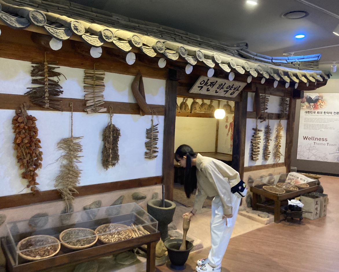 세 번째로는 미니어처로 꾸며진 옛 약초마을의 모습을 보면서 약초마을의 이야기를 통해 약초의 채취, 가공, 유통 과정을 살펴볼 수 있고, 네 번째로는 약전 학약방의 실제 모습이 재현되어 있어서 무엇을 하는 곳인지 살펴볼 수 있습니다.