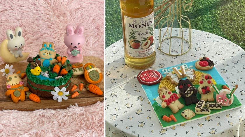 그리고 평범하고 흔한 쿠키들을 만들어서 비닐 봉지에 담는 것이 아니라, 각각의 테마에 맞게 식용색소로 바탕에 배경을 칠하고 만든 쿠키들을 그 위에 아이들이 자유롭게 배치하여 마치 하나의 미술 작품을 만드는 느낌이었습니다. 아이도 체험 후에 완성된 작품에 만족해하고 먹기 전에 사진으로 남기고 싶어 했습니다.