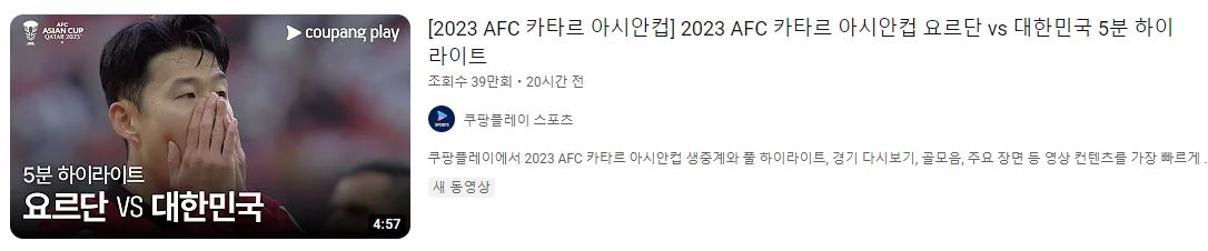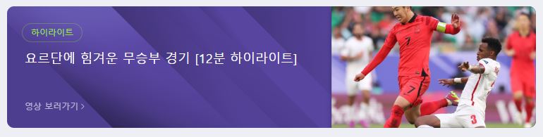 경기를 못 보신 분들은 아래 링크로 가셔서 요르단과 대한민국의 경기 하이라이트를 보시고 오시면 됩니다.