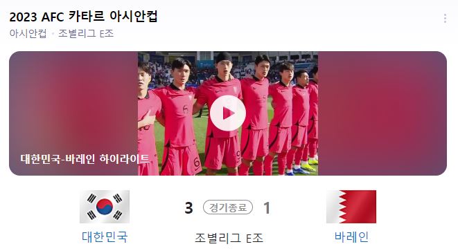 1. 아시안컵 조별리그 2차전 경기 결과