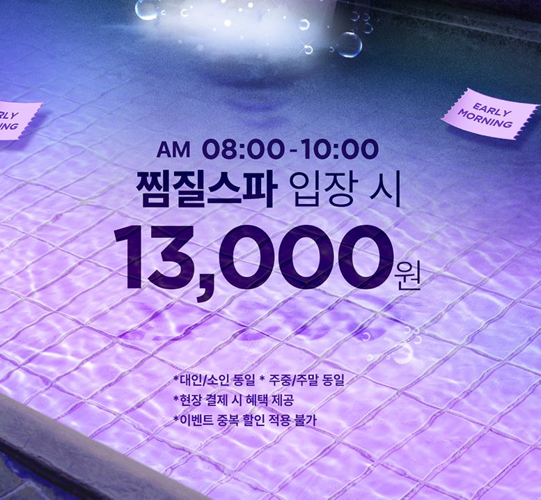 - 심야 힐링 : 저녁 7시 이후 입장 시 13,000원 (대, 소인 공통)