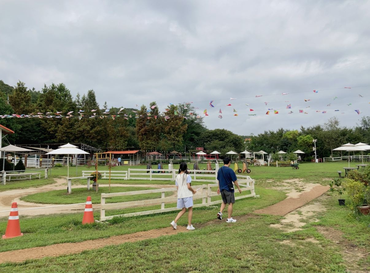 입장료는 별도로 없이 무료이고 체험 이용 시 체험별로 별도 비용을 지불하시면 됩니다. 주차장은 진입해서 입구 쪽에 제1주차장이 있는데 비포장 바닥이기는 하지만 자리가 넓어서 무리가 없고 역시 무료 이용이 가능합니다. 목장 위쪽으로 제2,3 주차장도 있으나, 1주차장으로 충분해서 위쪽까지 올라갈 필요는 없었습니다.