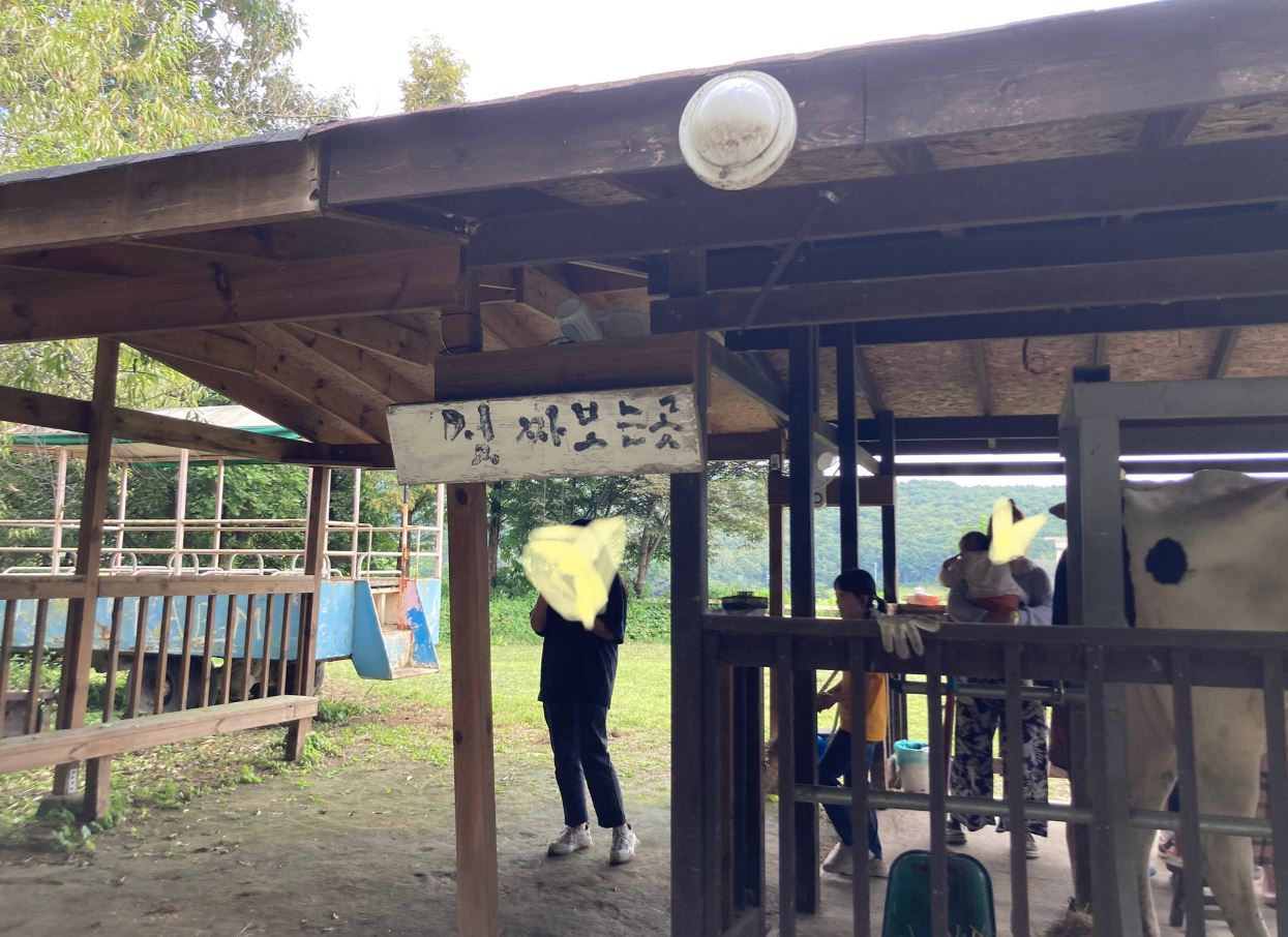 저희는 목장을 좋아해서 대관령 목장과 평창 여행에서도 목장을 방문했던 적이 있습니다. 다른 목장에서도 건초주기, 송아지 우유주기 등의 체험은 경험이 있지만 젖소 젖 짜기 체험은 처음이라서 생소하고 신기했습니다. 다행히 젖소가 스트레스 받지 않게 조심히 안내에 따라서 체험해 볼 수 있는 기회가 있어서 좋은 경험이었습니다.