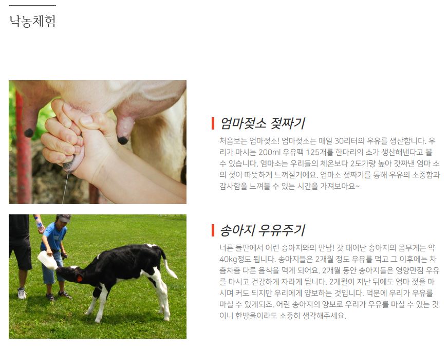 마지막, 엄마 젖소 젖 짜기 체험은 아이들과 어른들 모두 참여가 가능하니 아이에게 사전에 미리 설명하시고 꼭 참여해 보시길 바랍니다.