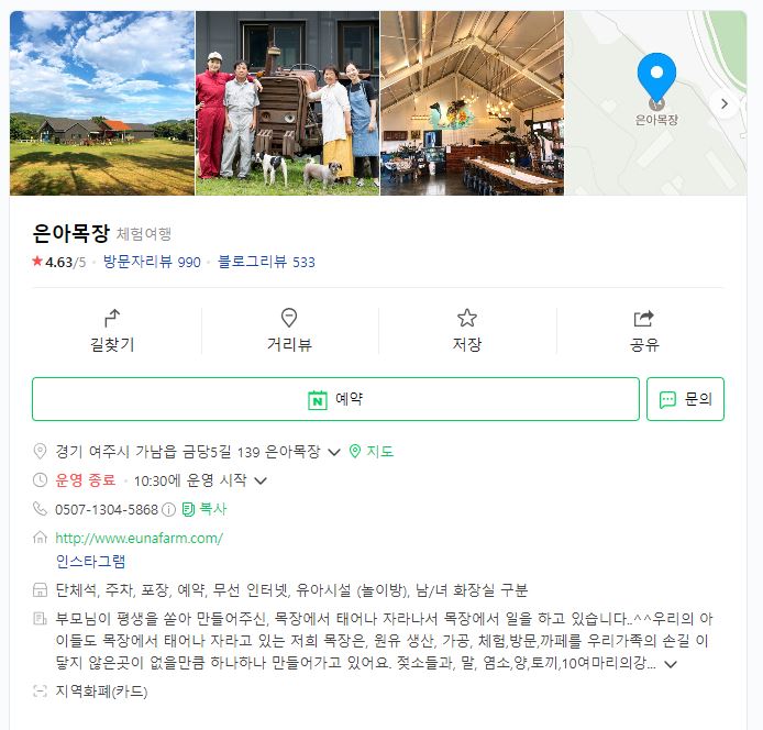 1. 은아목장 방문 정보