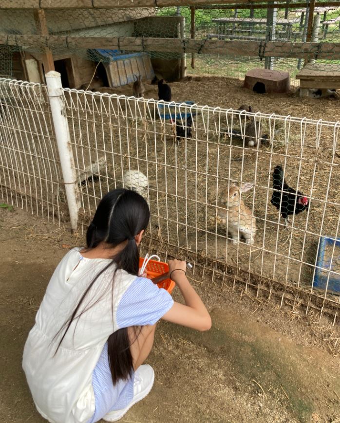 10시쯤에 체험장에 가서 예약확인을 하시면 예약 인원에 맞게 동물들에게 먹이로 줄 수 있는 당근 바구니를 받을 수 있습니다. 목장 안에는 말, 토끼, 양, 돼지, 염소, 거위, 오리 등 여러 동물들이 있는데 어린 송아지를 제외하고 모든 동물들에게 먹이 주기가 가능해서 체험 일정 시작 전 사람들이 많이 몰리지 않을 때 여유 있게 먹이를 주시면 더 좋습니다.