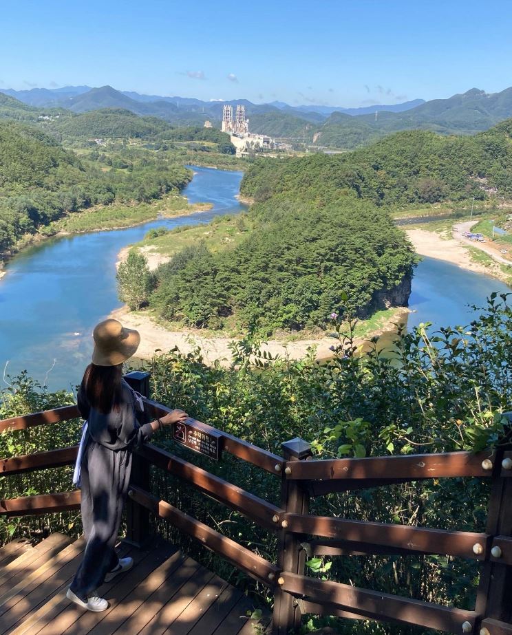 TV프로그램이나 책에서 한 번쯤은 누구나 본 적 있는 이곳은 우리나라 한반도 지도의 모습을 위에서 내려다본 것과 흡사해서 아주 유명한 곳입니다. 저는 아이가 학교 사회 시간에 소개된 이곳의 방문을 원해서 방문했으나 오지 않았다면 후회했을 것이라고 느낄 만큼 멋진 곳이었습니다.