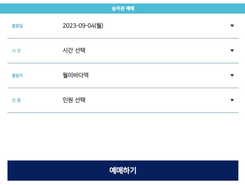 월미 바다열차는 홈페이지(https://www.wolmiseatrain.or.kr)에서 인터넷 예약이 가능합니다. 이용일 하루 전까지 예약할 수 있고, 별도의 전화 예약은 받지 않습니다. 인터넷 예매 후 시간대 변경은 불가능하며, 일정 변경은 탑승 3일 전까지 사이트에서 하셔야 합니다. 시간대별(30분 단위) 40명까지 예매 가능하니 인원이 많은 경우에는 예약 후 이용을 하시는 것도 좋습니다.