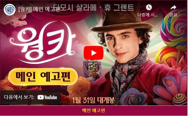 지난 1월 동대문 DDP에서 열린 워너브라더스 100주년 전시회를 방문했었는데요, 전시회 중간에 워너브라더스에서 1월 말 개봉 예정인 웡카에 대한 쇼룸을 보고 개봉하면 꼭 가족과 함께 보고 싶다는 생각을 했습니다. 원작 소설을 재미있게 보기도 했고, 워너브라더스만의 판타지 속으로 들어가 보고 싶은 기대감으로 2월에 영화를 관람했습니다. 오늘 그 후기를 남겨보겠습니다. 아직 영화를 보지 않으신 분들은 아래 예고편 먼저 보시고 후기 살펴보시기를 추천드립니다.