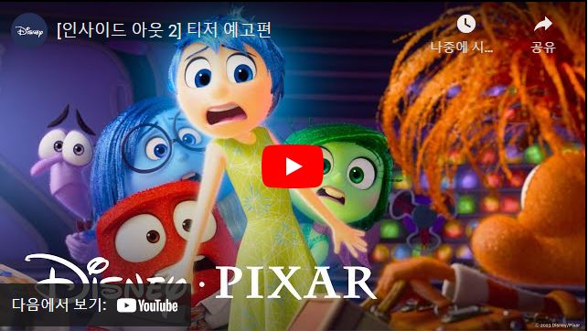 아직 영화를 보지 않으신 분들은 아래 영상으로 가셔서 예고편을 먼저 보고 오시기를 추천드립니다. 많은 분들이 아시겠지만 '인사이드 아웃 2'는 2025년 개봉한 '인사이드 아웃'의 속편입니다. 1편을 보고 보신다면 더 좋겠지만, 이어지는 내용은 아니기 때문에 2편을 먼저 보시는 것도 특별히 문제는 없습니다. 하지만 1편도 정말 감동적으로 잘 만들어졌기 때문에 2편을 보신 후라도 나중에 1편을 찾아보신다면 더 좋을 것 같습니다.