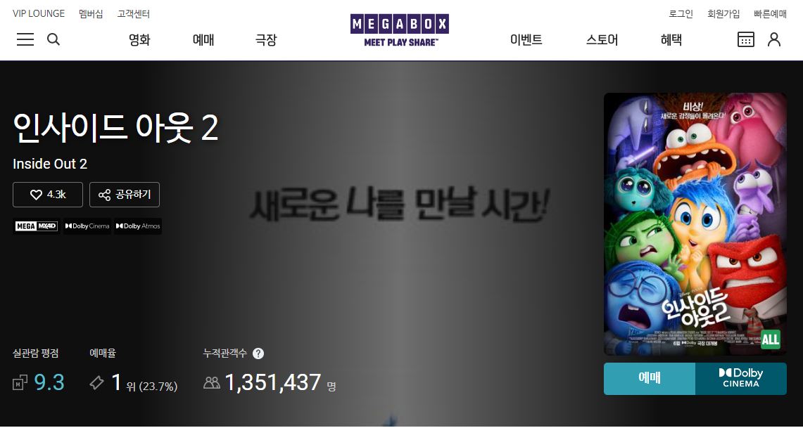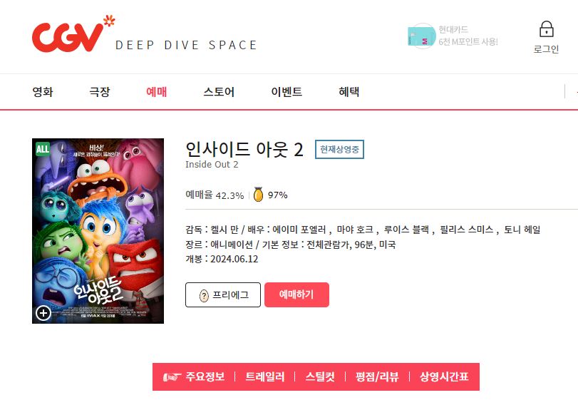 1. '인사이드 아웃 2' 영화상영 일정 예매