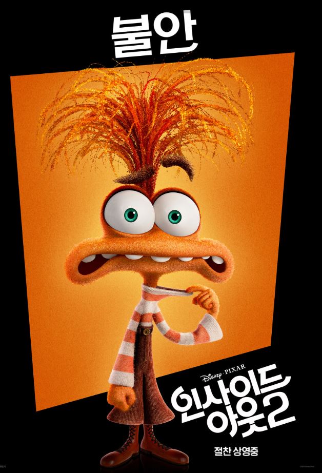 - 불안(Anxiety) - 기쁨과 함께 인사이드 아웃 2의 주인공으로 새 감정 식구들 중 가장 먼저 출연한다. 중성적인 외모를 가졌지만 여성이다. 기쁨이처럼 눈동자 색이 다른 감정들과 다르게 자신만의 고유의 색이 아닌 초록색, 혹은 청록색이다.