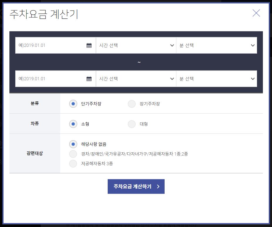 추가로 일반 주차장과 동일하게 경차/장애/유공자/다자녀/저공해차량(1,2종)은 50% 추가 할인이 가능하고, 저공해차량 3종도 20% 감면 혜택이 있으니 적용 받으시기 바랍니다.