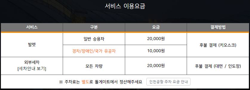 - 공식 대행업체 : 투루발렛(하이파킹)