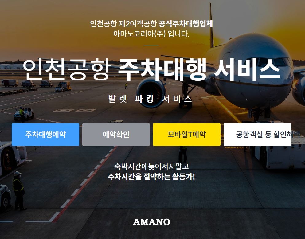 인천국제공항 공식 주차대행 서비스는 온라인에서 간편하게 예약할 수 있습니다. 제1여객터미널과 제2여객터미널은 각 별도의 주차대행업체가 운영하고 있는데요, 아래 링크로 가시면 공식 주차 대행업체로 바로 예약이 가능합니다.
