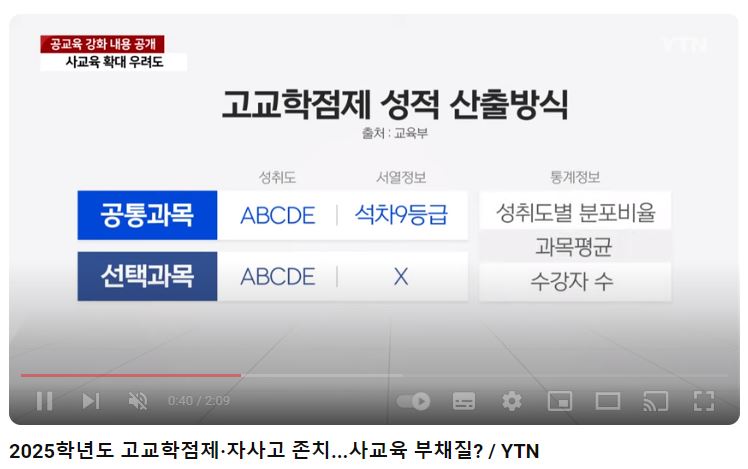 두 번째, 2028학년도 대입 제도 개편으로 09년생 학생들부터는 내신 평가 제도가 9등급제에서 5등급제로 바뀌는데요, 이는 내신 경쟁의 부담이 지금보다는 많이 줄어들면서 내신의 불리함 때문에 자사고, 외고, 국제고 진학을 고민하던 학생들의 지원이 더 많아질 가능성이 높고 그로 인해서 경쟁이 높아질 것이라는 의견입니다.