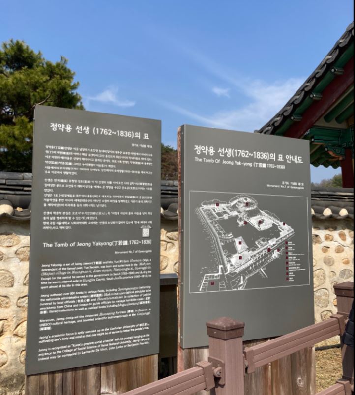 유적지 중앙에는 나라의 부패를 꾸짖던 선생의 목소리와 꼿꼿하고 검소한 그의 생활이 보존된 여유당이 있고, 그 뒤편 언덕 위에 이백 년 세월이 느껴지는 선생의 묘가 있습니다.