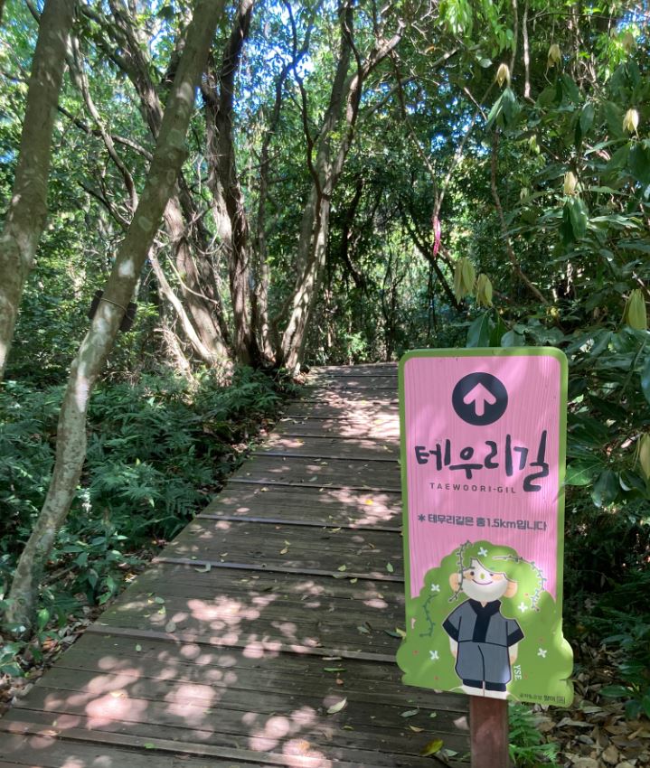 저처럼 아이와 동행하시는 분들이라면 기본 코스인 테우리 길을 추천드립니다. 탐방로에서 가장 먼저 시작되며, 거의 평지이고 대부분이 걷기 편한 데크길로 되어있거나, 숲속에 짚으로 매트가 깔려 있어서 위험하지 않고 아이도 걷기 편안합니다.