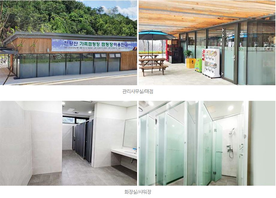 2만 7천여 제곱미터의 규모의 친환경 복합 문화 공간으로 조성된 천왕산 공원은 가족 캠핑장과, 생태탐방, 체험학습 공간인 생태숲이 있어서 어른부터 아이까지 모두 즐거움을 느낄 수 있었습니다. 시설 또한 생긴지 얼마 되지 않아 깨끗하게 잘 관리되고 있고, 샤워실의 온수도 잘 나와서 씻는 것도 불편함이 없습니다.