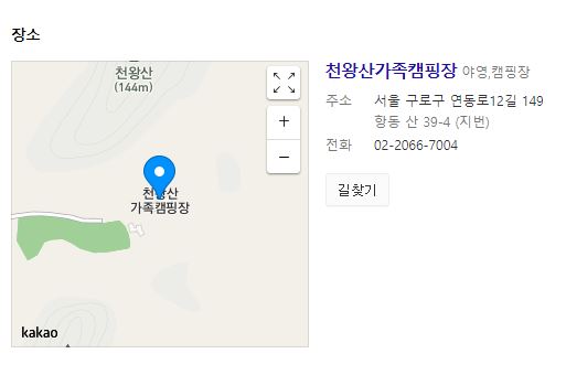 천왕산 가족 캠핑장은 서울시 구로구 항동 149-1번지의 천왕 근린공원 일대에 있습니다. 천왕산 아래에 양지바른 곳에 자리 잡고 있어서 정말 숲속에서 캠핑을 즐길 수 있는 도심 속의 마술 같은 공간입니다.