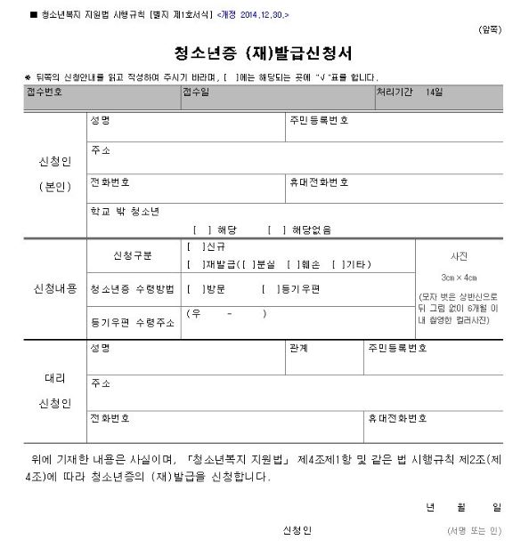 : 청소년(9세~18세 본인) 또는 법정대리인