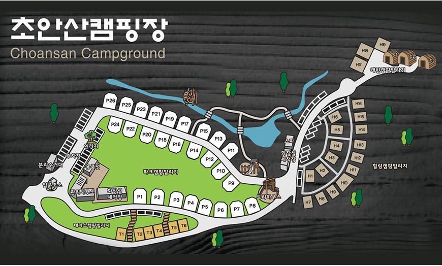 51개의 사이트와 더불어 영유아나 어르신들과 함께 캠핑을 즐기기에도 부담스럽지 않은 캐빈하우스도 3동 보유하고 있어서 다양한 층의 이용객들이 편리하게 이용할 수 있습니다. 그리고 캠핑장 내 넓은 잔디광장, 야외 스파, 어린이 놀이터, 매점까지 다양한 부대시설을 보유하고 있으며, 주변에 초안산 생태공원도 있어서 캠핑 중 즐길 요소들이 많은 곳이기도 합니다.