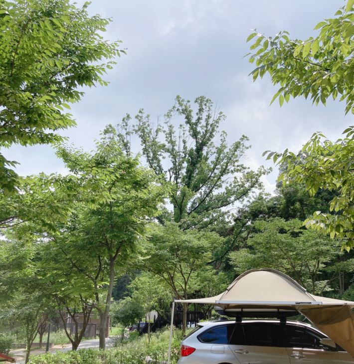 저는 테라스 캠핑존을 이용했는데 캠핑장의 경사면을 그대로 이용하여 고지대에 위치한 사이트로 캠핑장 전체를 내려다보며 여유로운 시간을 보내는 기분이 너무 좋았습니다. 그리고 다른 사이트에서 거리도 떨어져 있어서 사생활 보호에도 좋은 구역이었습니다.