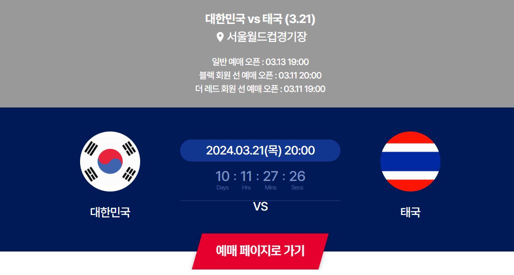 1. 대한민국 VS 태국 경기 일정 및 티켓 예매