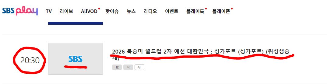 북중미 월드컵 아시아 2차 예선전을 위해서 우리 대표팀이 싱가포르 원정에 나섰습니다. 원정 경기이니 만큼 직접 경기장에 방문해서 응원하지 못하는 분들이 많으신데요, 6월 6일 밤에 진행되는 싱가포르와의 원정 경기를 볼 수 있는 생중계 채널 많이 궁금합니다. 생중계 방송 채널은 MBC, SBS, 쿠팡플레이에서 시청이 가능합니다.