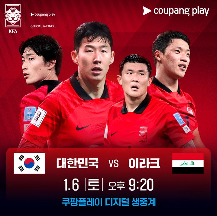 또 쿠팡 플레이에서도 디지털 생중계로 이번 대한민국과 이라크의 최종 평가전을 생중계한다고 하는데요, 쿠팡 플레이는 15일부터 시작되는 아시안컵의 한국 대표팀 경기도 생중계로 진행할 예정입니다. 이번 경기 쿠팡 플레이 생중계 해설은 축구 국가대표 출신 이근호와 정용검 캐스터, 한준희 해설 위원이 맡는다고 하니 기대하셔도 좋겠습니다.