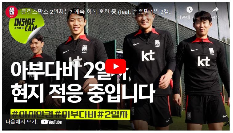 위르겐 클리스만 감독이 이끄는 한국 축구대표팀은 오는 6일(토) 오후 10시에 아랍에미리트(UAE) 아부다비의 뉴욕대 스타디움에서 이라크와 마지막 평가전을 가집니다. 이번 경기는 카타르 아시안컵에 대비한 최종 테스트로 그 의미가 있는데요, 우리 선수들이 힘을 낼 수 있도록 방송으로 보면서 응원해야겠습니다.