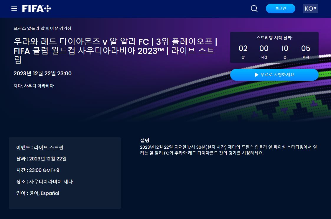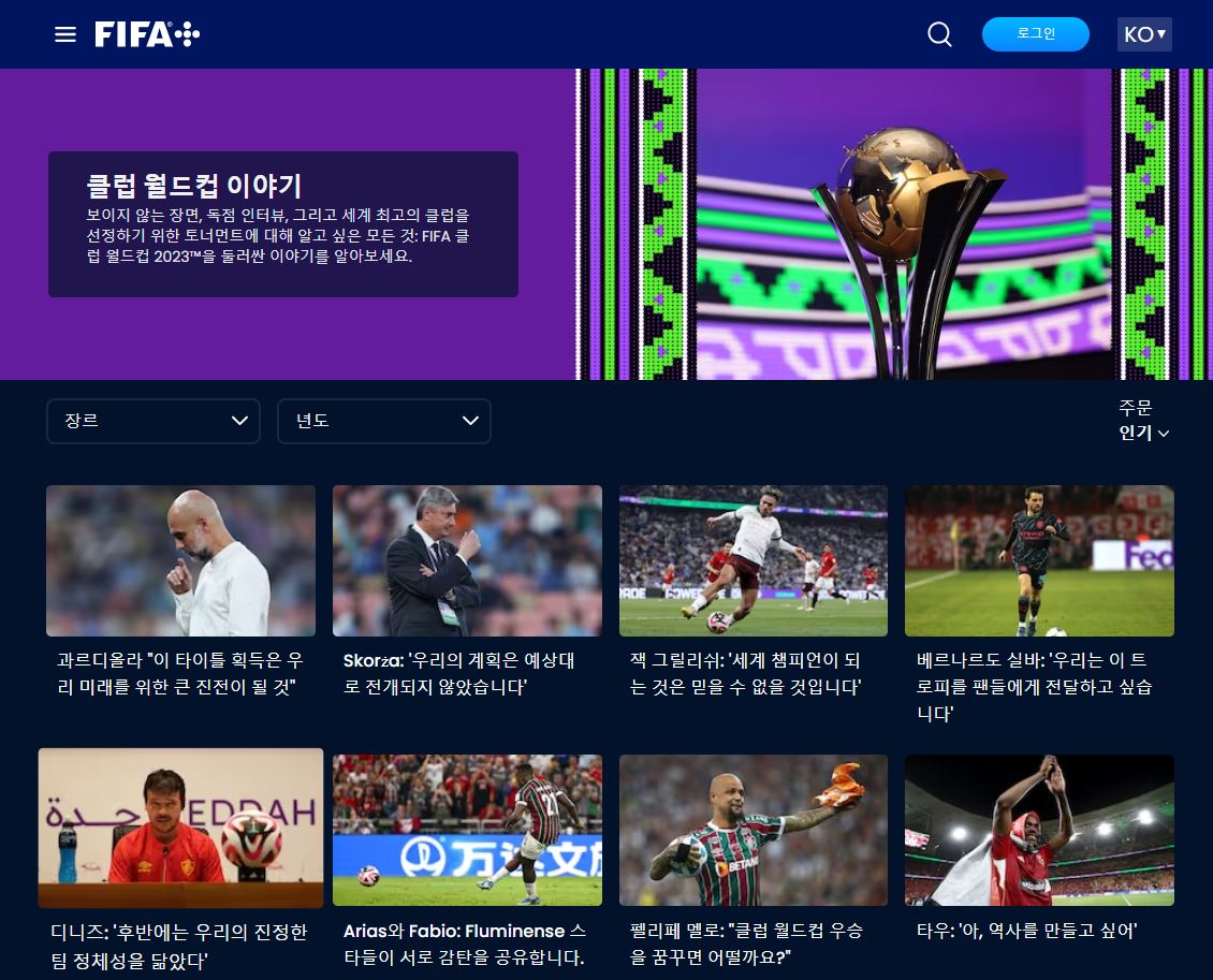 먼저 FIFA 클럽 월드컵 중계방송을 보고 싶어 하시는 분들 많으십니다. 전문적으로 해외 축구 중계를 하는 스포티비에서 실시간 중계로 시청이 가능합니다. 그리고 무료로 실시간 중계 시청이 가능한 방법도 있는데요, FIFA 클럽 월드컵 홈페이지에서는 FIFA+를 통해서 무료로 시청 가능합니다.