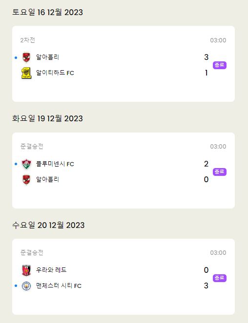 3. 클럽 월드컵 지난 경기 결과
