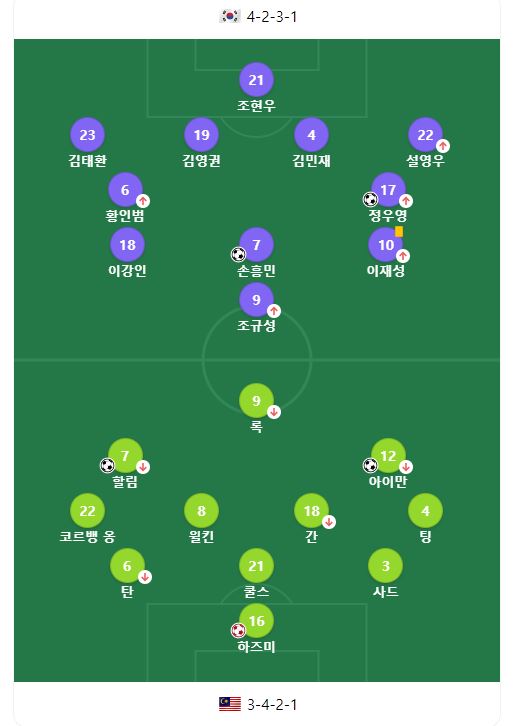 1. 한국 대 말레이시아 경기 결과