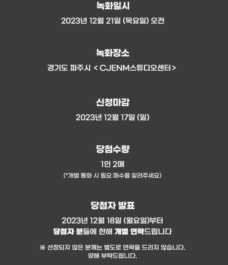 - 녹화 장소 : 경기도 파주시 <CJENM 스튜디오센터>