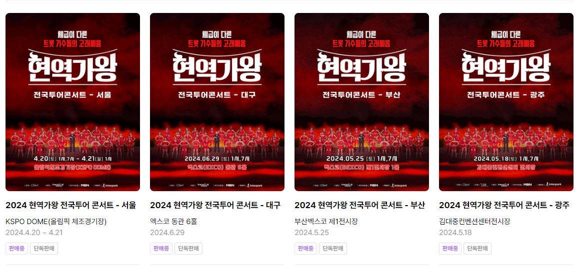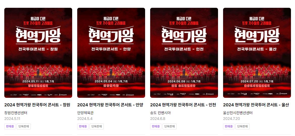 1. 현역가왕 전국투어 콘서트 일정 및 예매