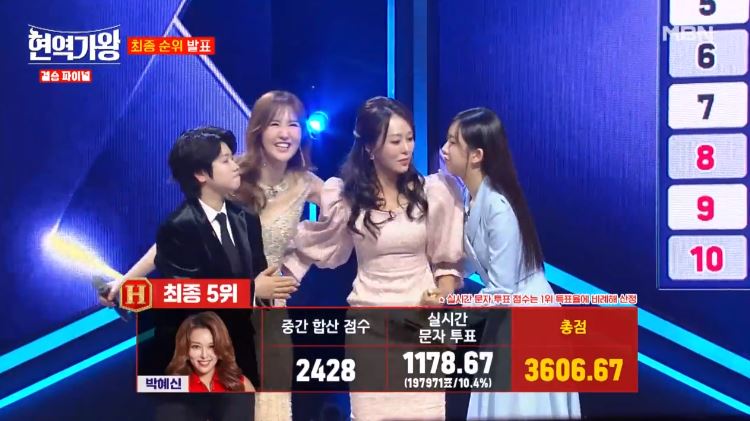 총점 : 3606.67 (중간 합산 점수 : 2428 / 실시간 문자 투표 : 1178.67)