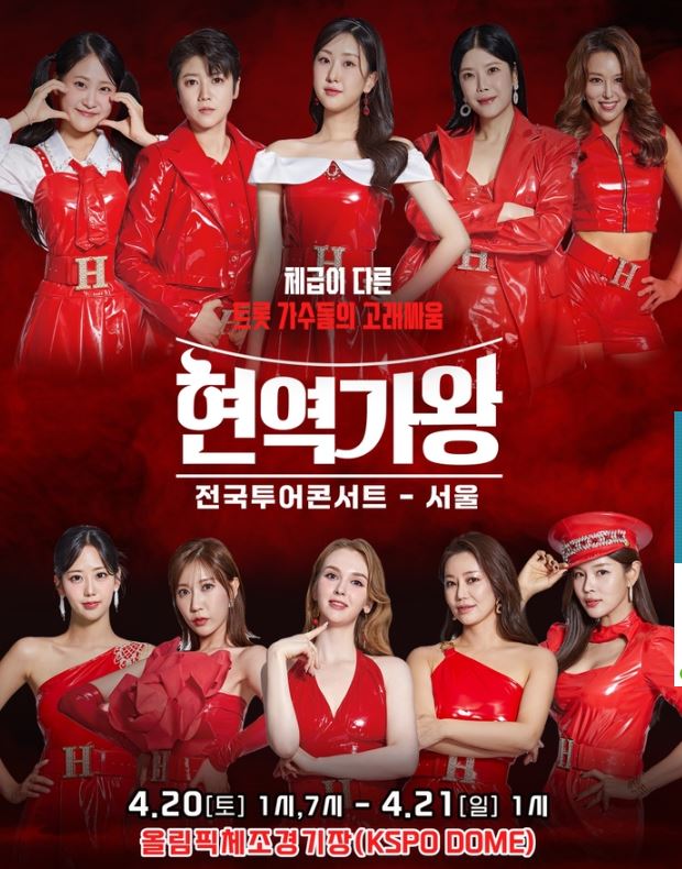 전국투어 콘서트는 최종 국가대표로 선발된 TOP7 전유진, 마이진, 김다현, 린, 박혜신, 마리아, 별사랑 님의 방송에서 공개되었던 감동적인 무대부터 특별 무대까지 준비되어 있으며, 현역가왕의 화제의 출연진도 게스트로 출연할 예정이라고 합니다.